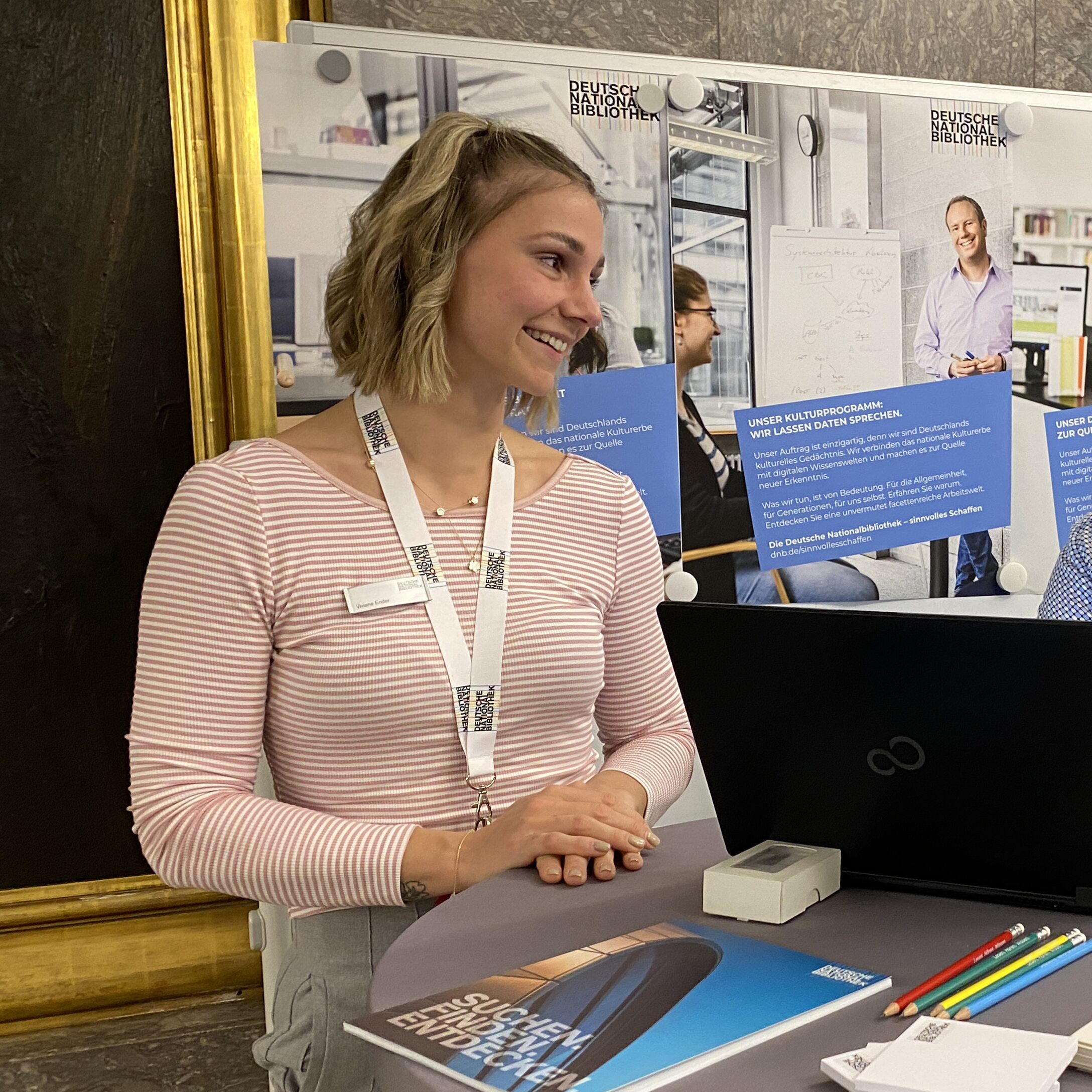 Für alle, die sich für diese Fragen interessieren, hat die Deutsche Nationalbibliothek ein virtuelles Vorstellungs- und Fragen-Format aufgesetzt. „Lerne unsere Arbeitswelten kennen“ findet seit März 2023 parallel zu konkreten Stellenausschreibungen statt. In dem Format stellt sich die Fachseite vor. Von den Teilnehmenden können Fragen zu Aufgaben oder Prozedere gestellt werden. Die Videokonferenzen sind ausdrücklich nicht Teil des Bewerbungsprozesses. Es gibt keine Anmeldungen, es wird nicht dokumentiert.