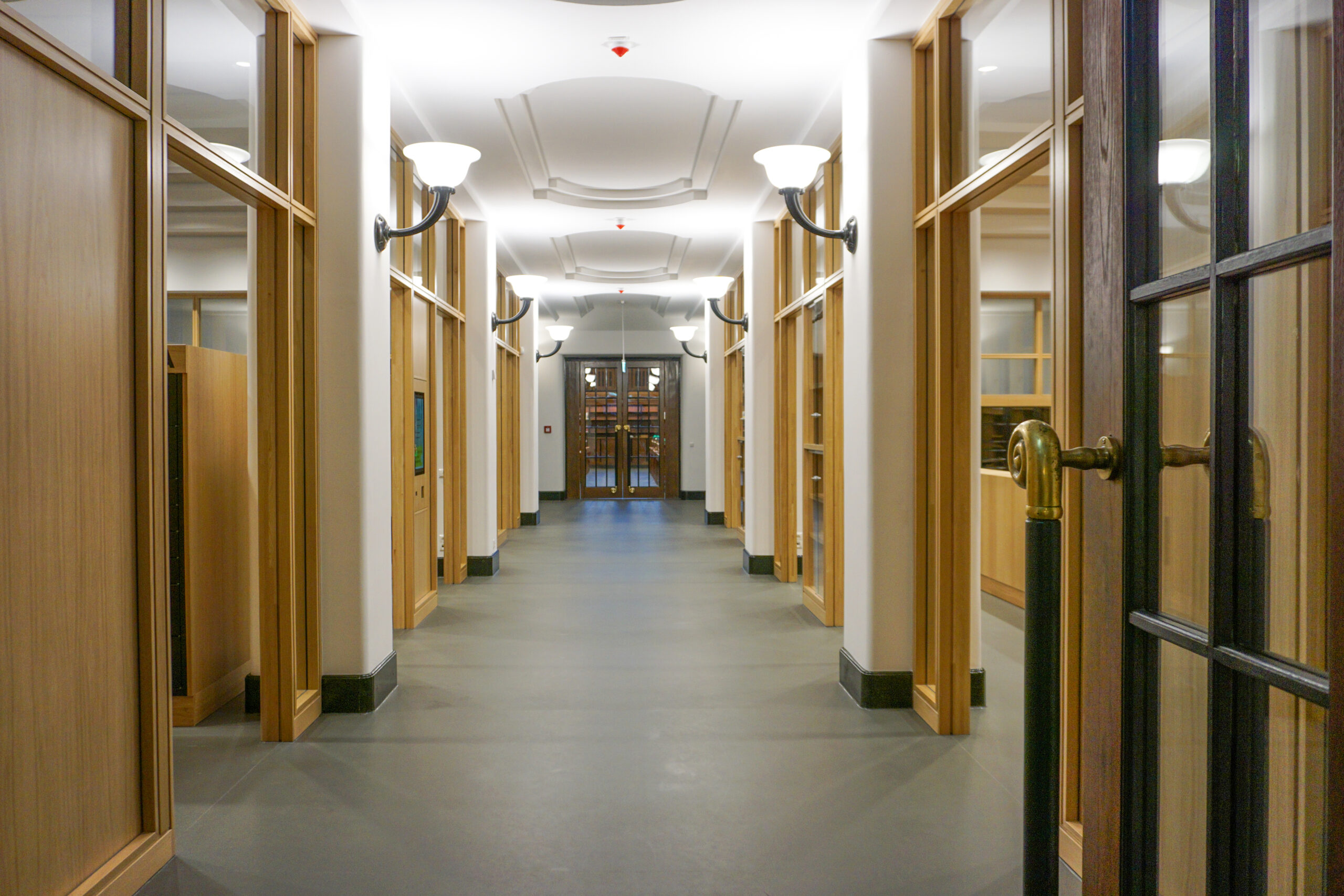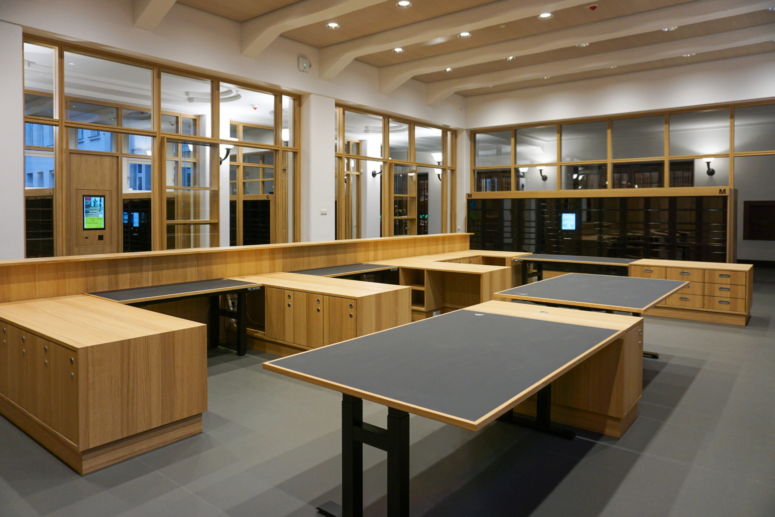 Am 24. Februar 2025 öffneten die neue Medienausleihe, der Lesesaal für Geisteswissenschaften und der Lesesaal für Naturwissenschaften in Leipzig wieder ihre Türen – frisch saniert, modernisiert und mit einem ganz besonderen Highlight: den Medienboxen. Was nach einem kühnen Spagat klingt, ist gelungen: Die denkmalgeschützten Räume wurden mit größtem Fingerspitzengefühl modernisiert. Fenster, Heizung, Lüftung – alles wurde technisch auf den neuesten Stand gebracht, ohne den Charme des historischen Baus zu verlieren. In Anlehnung an das ursprüngliche Raumkonzept von 1916 entstand in Leipzig ein neuer Bereich mit Servicetheke und Medienboxen.Mehr zum Bau in Leipzig finden Sie unter: https://blog.dnb.de/ein-mix-aus-alt-neu-modern-und-historisch/