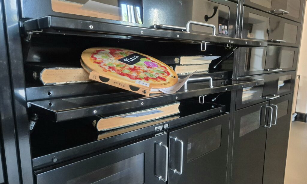 Für die Vielbesteller unter den Nutzenden gibt es auch noch die Bereitstellung der Medien auf Bücherwagen. Sie haben den Vorteil, dass nicht bis zu 20 Medien eingescannt werden müssen, um sie in die Medienboxen zu legen, sondern dass alle Bestellungen auf einen Wagen gebucht werden. Nur die Identifikationsnummer des Wagens muss noch eingescannt werden. Die Wagen werden in „Käfigfächern“ bereitgestellt. Das sind ebenerdige Fächer zur Verwahrung der Bücherwagen. Die Nutzenden können sie selbständig in den Lesesaal mitnehmen und wiederum selbständig zur Aufbewahrung bzw. Rückgabe in das Käfigfach zurückfahren.